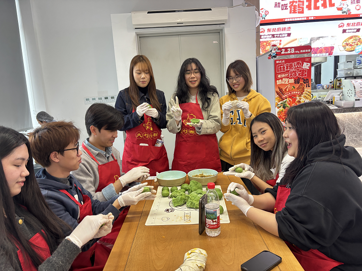 在随后的文化体验环节,食堂师傅亲自示范青团的完整制作过程,从揉制青团皮到包馅塑形,详细拆解每个步骤的操作要领,并强调揉面力度、包馅技巧等关键细节,引得现场学子目不转睛、跃跃欲试。中外学生纷纷穿上围裙,中国学生主动担任“文化小使者”,手把手地教留学生制作青团,同时细致讲解青团“迎接春天”的寓意。活动现场充满欢声笑语,不同国籍的学子因美食与文化而亲密交流,春日的美好与跨文化的温暖和谐相融。