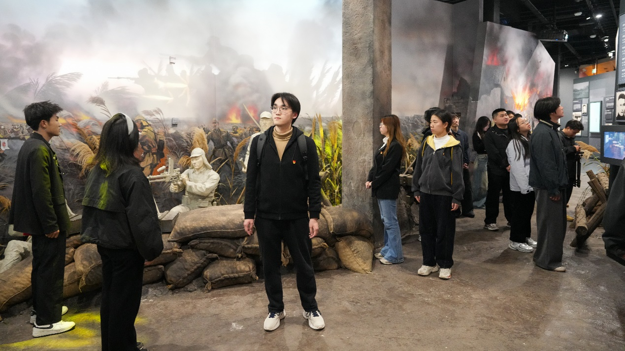 这堂课没有PPT,没有板书。历史场景即课堂,烈士遗物即教具,后人讲述即教材。学生们在全息成像、VR还原的硝烟中“走进”汇角战斗,在实物船舵前“目送”南渡勇士。师生们在实景实境中,完成了一次深刻的精神洗礼与思想淬炼。上海电机学院材料学院学生党员付倩在沉浸体验后感慨道:“子弹轨迹仿佛从耳边掠过,让我真正懂了‘为有牺牲多壮志’的重量。”