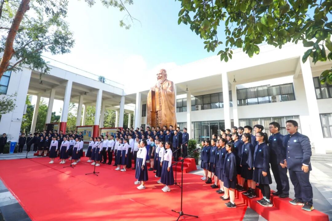 文化认同,润物无声。学校举行孔子像落成仪式,学生吟诵《论语》经典、传唱原创歌曲《孔子》,让中华优秀传统文化可感可触。通过“入学、入团、成人”三大仪式深化生涯规划,开展科技、读书等七大主题活动丰富精神生活。开设书法、国画、武术、舞龙舞狮、古诗词鉴赏等综合素养课程,多民族学生共同参与的舞龙项目连续三届夺得上海市学生龙文化全能赛一等奖。