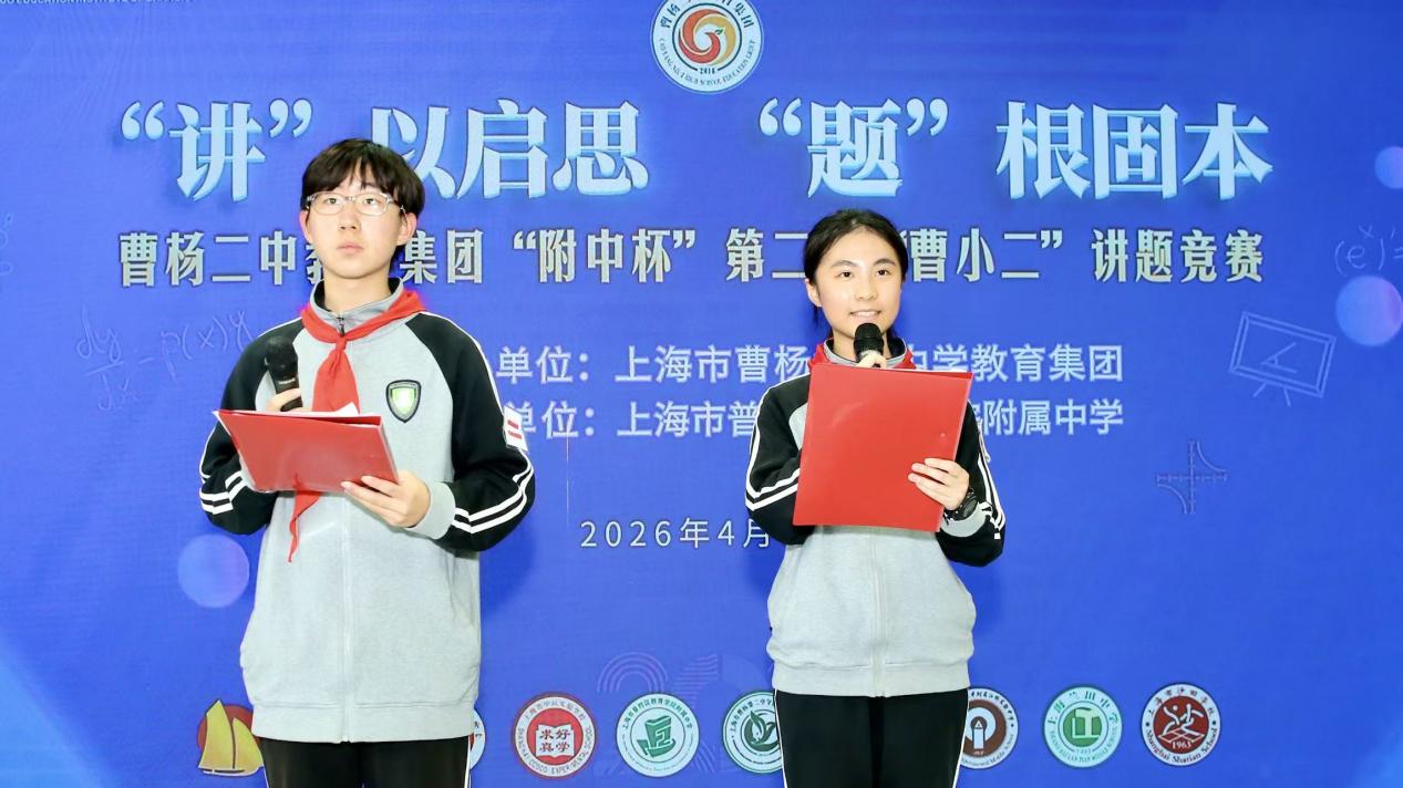 “思维飞扬,智慧闪光!数竞赛场,我们最强!”4月9日下午,由曹杨二中教育集团主办、普陀区教育学院附属中学承办的“附中杯”第二届“曹小二”讲题比赛在啦啦队的呐喊声中精彩开启。来自曹杨二中教育集团9所成员校的18位“小先生”们依次登台,进行数学思维与讲题表达的巅峰对决。最终,“金牌讲师”花落谁家?