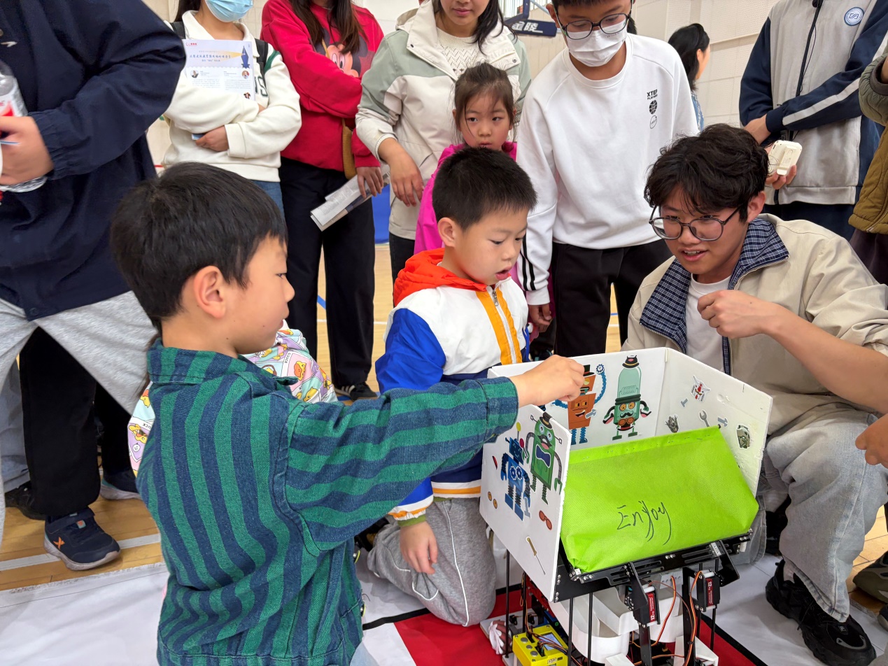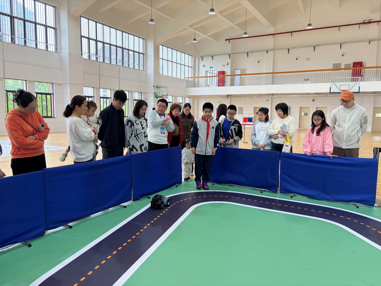 上午一年级专场,家长和孩子们体验了彩泥、香包制作等社团活动,走进阅览室、教室、操场、体育馆等场所,感受校园文化。体育馆内,无人机、DR无人驾驶小车、物流机器人等科技社团展示引来阵阵惊叹,孩子们在“玩中学、做中悟”中感受科技魅力。