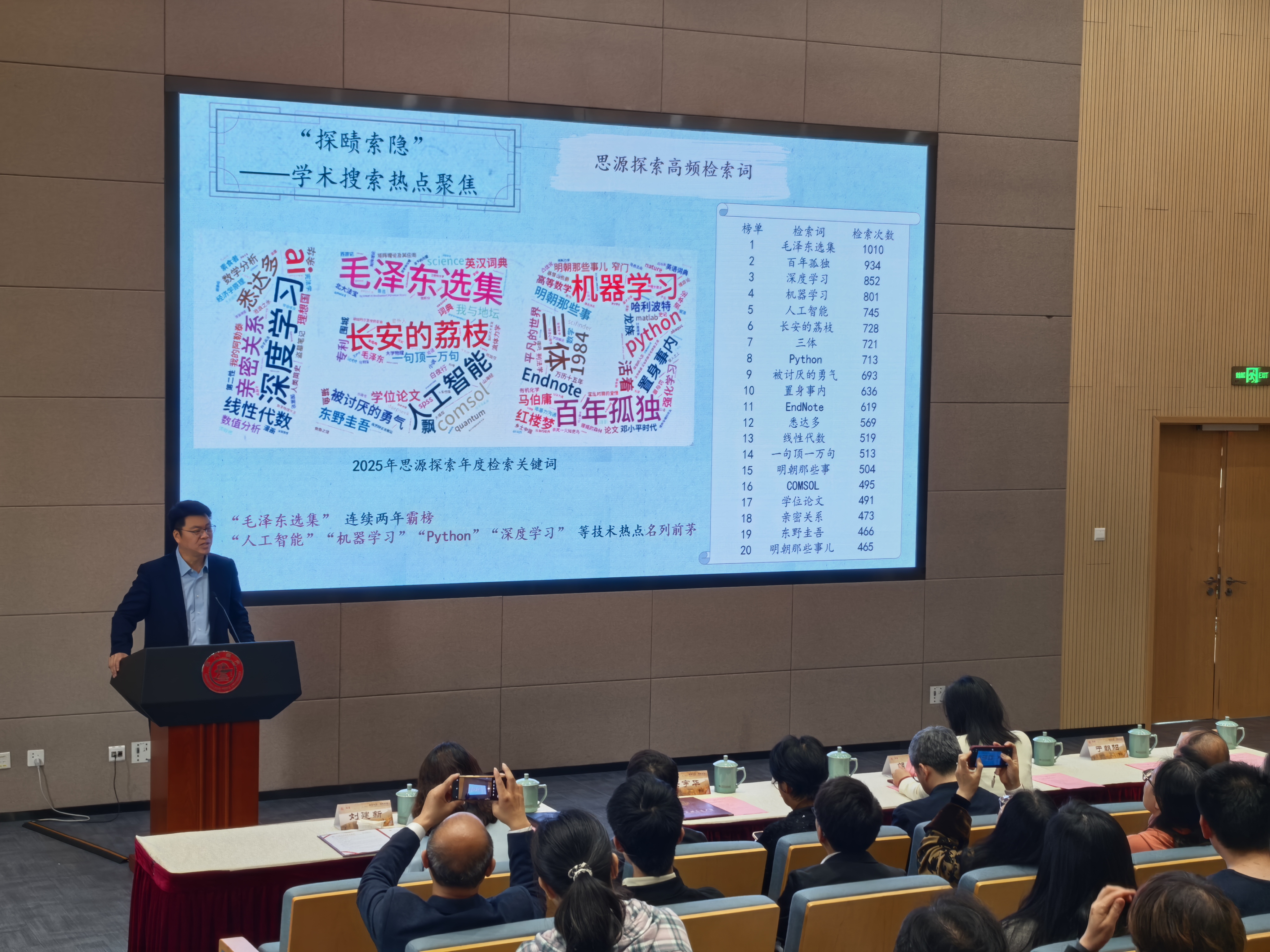 在学术搜索热点方面,“毛泽东选集”连续两年霸榜,“人工智能”“机器学习”“Python”“深度学习”等技术热点名列前茅。