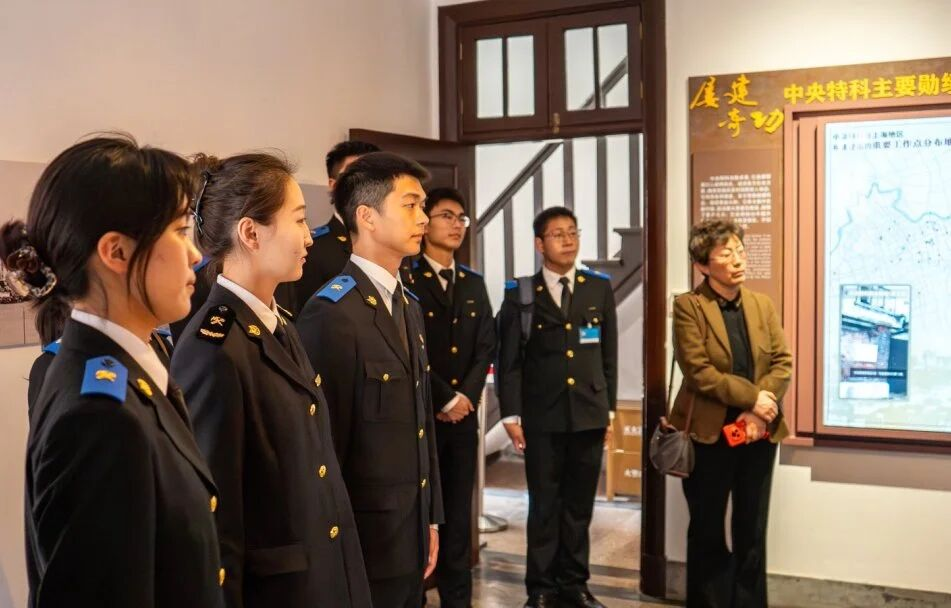 学生们积极参与多项活动:有的拿起画笔与镜头创作反走私主题作品,有的沉浸青马课堂坚定理想方向,有的站上模拟法庭体悟海关法治重量。学校还充分发挥仪仗队爱国主义教育与思政育人优势,打造“红色+法治”融合宣传载体,与洋山出入境边防检查站警员赴中共二大、中央特科机关旧址纪念馆等地联学共建,实现红色铸魂与法治育人双重成效。通过主题团日、课题研究、社会实践、志愿服务,国家安全教育与专业育人、海关实务、社会服务同频共振。