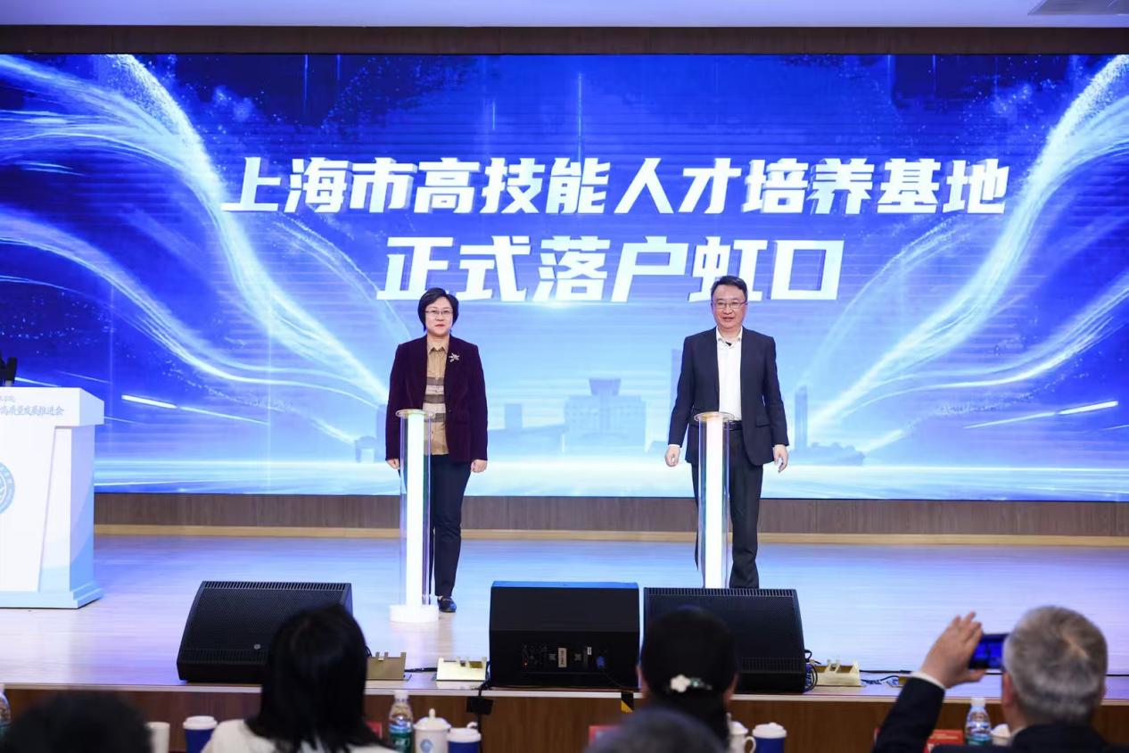 虹口区副区长章维、市人社局职业能力建设处处长李鹰共同启动上海市高技能人才培养基地落户虹口仪式。该基地落地是对学院服务社会、培养高端技能人才能力的官方认可与重要赋能,标志着学院在构建多元化、高层次产教融合平台方面迈出了关键一步。