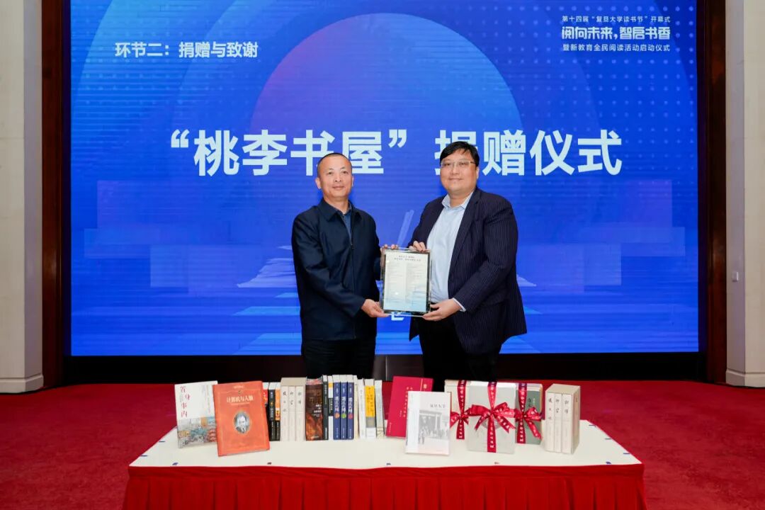 复旦大学向杨浦区赠送“桃李书屋”图书,这批书目全部来自学校官微“旦夕尚书”专栏中各位学者与科研工作者的诚意推荐,承载着复旦人的阅读品味与思想温度。