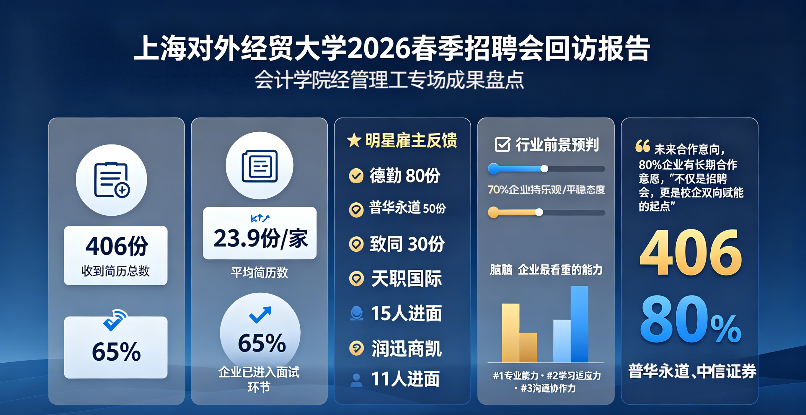 一场招聘会的结束,恰恰是深度育人的开始。在刚刚落幕的2026年春季“经管理工”专场招聘会后,上海对外经贸大学会计学院并未止步于单一的成效统计,而是组织了一支由48名学生志愿者组成的回访团队,对22家参会企业进行了一对一深度回访,并形成了一份翔实的《企业回访分析报告》。