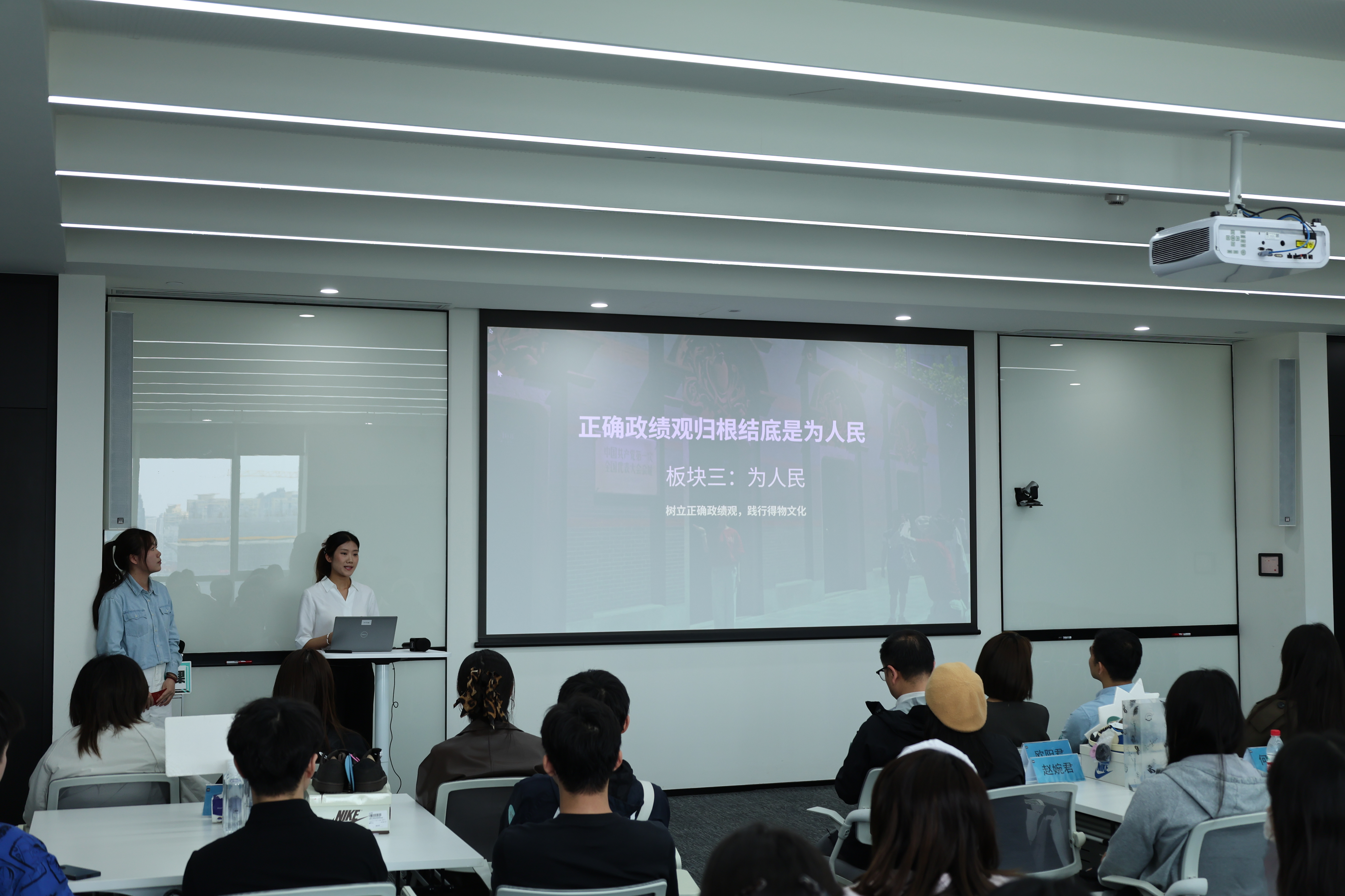 一堂以《从上海的“七个月”看正确政绩观》为主题的微党课就地开讲。与以往不同,主讲人由毕业生党员与得物青年党员同台共学、同堂对讲。微党课通过回溯习近平同志在上海工作七个月期间的执政故事,用“四个真”深入浅出地剖析了正确政绩观的内涵。同时,巧妙地将会计专业“求真务实”的职业信条与得物首创“先鉴别、后发货”的模式相链接,使理论宣讲在双向奔赴中更具说服力,也让毕业生党员的身份意识在走向职场前被共同擦亮。“在得物查验鉴别中心看到每件商品都要经过多重人工审核时,我脑海里跳出‘求真’二字。作为会计学院学生党员,我忽然明白:我们财会人守护的与得物追求的‘真’,本质上都是不注水、不作假,经得起检验。”2026届毕业生党员陈韦亦在参加完得物现场微党课后这样分享道。