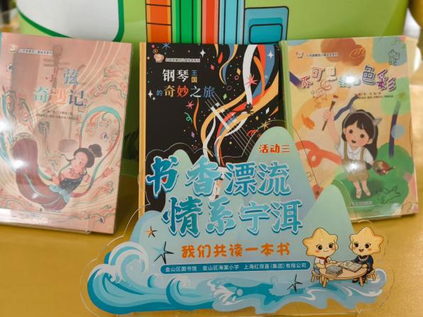 开幕式上还特别设置了“书香漂流 情系宁洱”捐书环节,各年级学生代表依次上台捐赠爱心书籍,王春强为“小海星”们颁发荣誉证书。一本本爱心图书,将通过“金山・宁洱”云端共读活动跨越山海,联结沪滇少年,让书香远播、让爱心传递。上海红双喜(集团)有限公司也向沪滇少年赠送了《钢琴王国的奇幻之旅》等老品牌绘本。