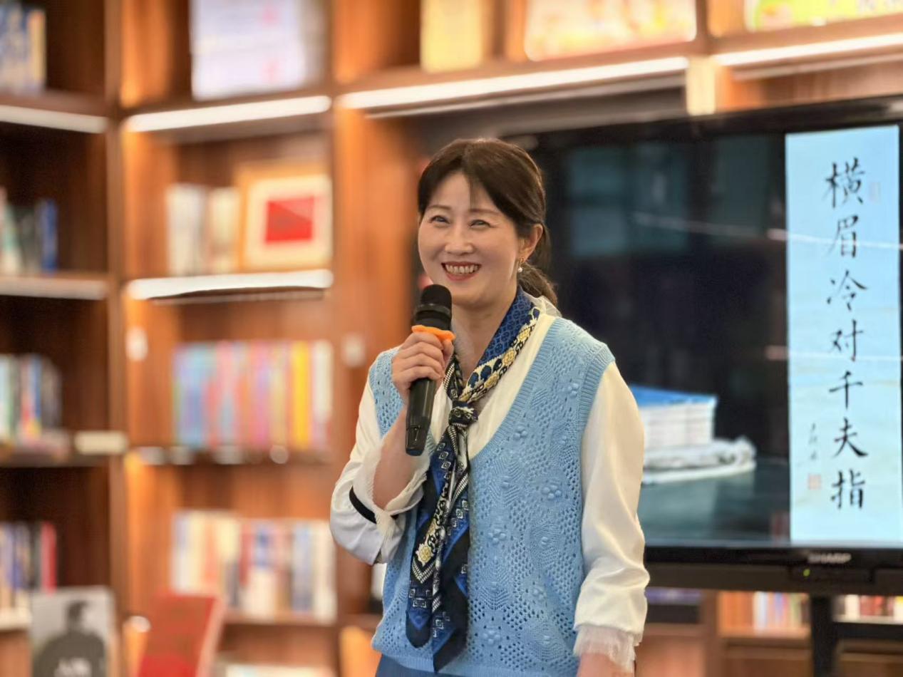 第三位登台的是丁剑萍老师,她朗诵的是萧红的名作《回忆鲁迅先生》。在她的演绎下,一个不同于“横眉冷对”的“人间鲁迅”跃然眼前——明朗的笑声、走路时抓起帽子往头上一扣的潇洒、深夜伏案工作的背影……鲁迅先生有血有肉、可亲可敬的形象深深印刻在每一位学生的心中。
