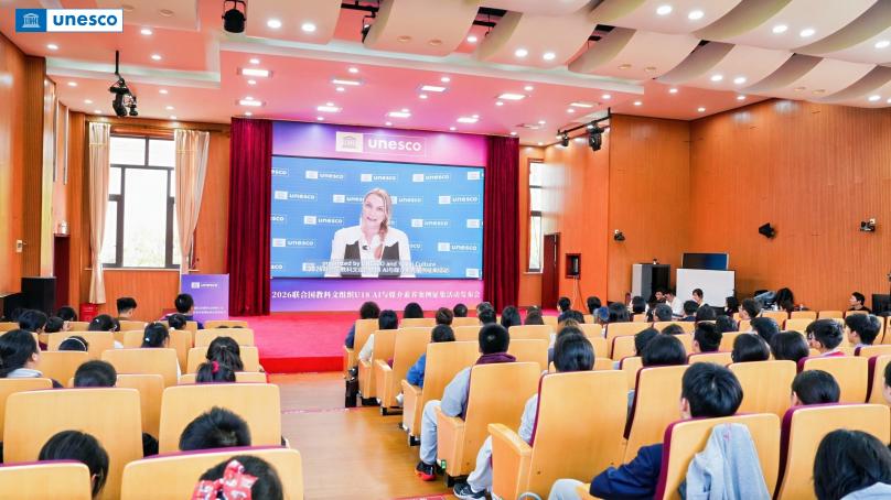 活动现场,联合国教科文组织项目顾问杜旻老师还为学生们带来了在线专属讲座;组委会刘定邦老师则详细讲解了活动参与规则,特别强调认准“unesco.yuguimedia.com”是唯一官方投稿渠道。特别值得一提的是,本次活动要求所有参选者提交《AI工具辅助创作说明书》,学生需要坦诚披露AI参与的环节与比例,以此培养青少年负责任的技术使用习惯。